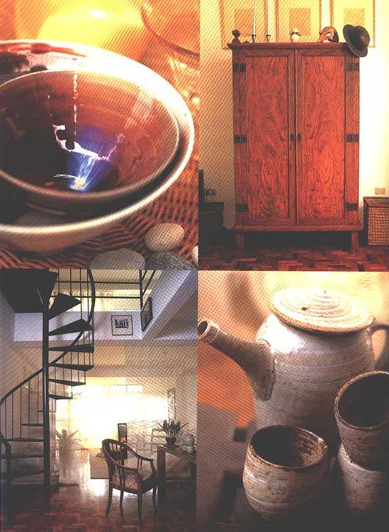 Modern artist-turned-craftswoman, Yola Perez Johnson has created a rustic but gracious home from such natural materials as bamboo, abaca, and rattan, a garden space, and a lively imagination. Re-designing the basement of an ordinary apartment in a rambling 1950s Makati house and utilizing its best asset-a spacious backyard-has been a labor of love. Today, she and her husband live in what were the servants' quarters, and nurture the spirit of the old mansion with Nature's own materials. Similarly, when Yola's architect daughter, Popi Laudico, moved out - with just one aparador, one bed, and a collection of paintings by Roberto Chabet, Jonathan Olazo, and Tam Austria - she reinterpreted her mother's abaca fiber arts in her new 95 sq-m, two level loft. The result is an equally spirited living space.
