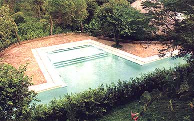 A T-shaped pool is accessible by going through a white-pebbled walkway, lined with beautiful native flowers, and then down a set of stairs. It is from this vintage point that one can truly appreciate the view of the entire house and the landscaped property with the oceans and mountains on either side.
