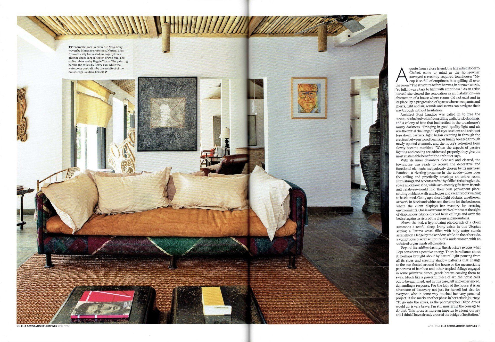 Beyond its sublime beauty, the structure exudes what Popi considers a positive energy. There is radiance about it, perhaps brought about natural light pouring from all its sides and creating shadow patterns that change as the sun floated around the house or the mesmerizing panorama of bamboo and other tropical foliage engaged in some primitive dance, gentle breeze coaxing them to sway. Much like a powerful piece of art, the house calls out to be examined, and in the case, felt and experienced, demanding a response. For the lady of the house, it is an adventure of discovery not just for herself but also for everyone who in some way touched her very personal project. It also marks another phase in her artistic journey: “To go into the abyss, as the photographer Diane Arbus would do, is very brave. I’m still mustering the courage to do that. This house is more an impetus to a long journey and I think I have already crossed the bridge of hesitation.”