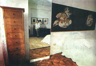 The German landlady showed Popi all the units available-one bedroom, two bedrooms, small units because she was single and alone-from the ground floor up. "Until we reached this unit on the fourth floor-I fell in love with it at first sight," Popi gushes. "Omigosh, look at this wall, all this space for my paintings. Walls for hanging paintings are an important consideration for me because I have a lot of paintings. So when I saw this unit, I sort of blocked off the space for my paintings."