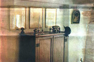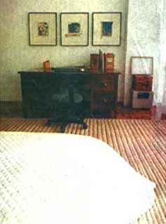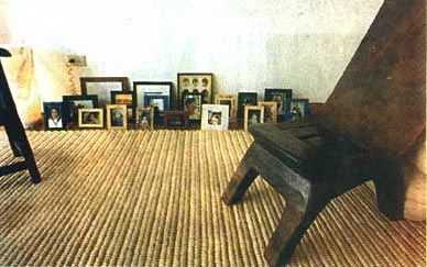 In the living room are a pencil sketch series and a watercolor series (titled "Windows") by Roberto Chabet. All over the house are more artworks-a blowup by Angel Cruz, a portrait of two street urchins by an unknown Mabini artist, a pen and ink portrait of a 12 year old Popi by her mom, Popi's "Popig" portrait by her brother Rolando, and Popi's own works which include a drawing from her schooldays of a couple kissing with their heads wrapped in bags, and angel cross stitch works.
