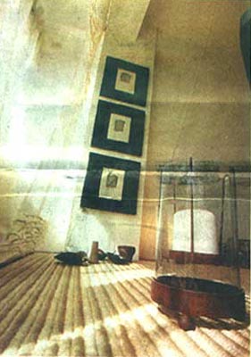 As you climb the winding stairs, you find more artworks. There's a teeny-weeny sketch by Tam Austria of his bigger painting titled "Ilaw sa Gabing Madilim." Jonathan Olazo's oil titled "Peonies" serves as a colorful headboard for Popi's mattress (no wonder Popi dreams in Technicolor). "I don't have a bed," says Popi. "All I have is this mattress with a white bed sheet of fine quilt."