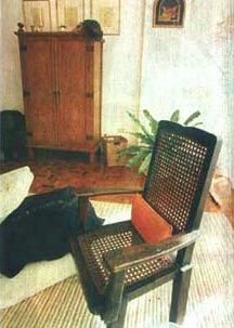 For the dining table-for two for now-Popi has this beaten , bugbog, wooden dining table that used to be in their garden. The chairs may look new but they're really old chairs from a flea market in New York. "They were so black and grimy but I liked their shape," says Popi. "So we stripped them of their thick wax or lacquer and it turned out to be this wood. We just waxed them and reupholstered them."