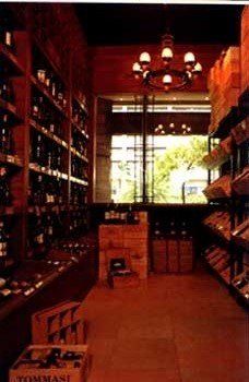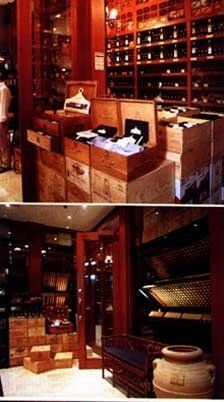 A classic-contemporary motif designed by Architect Popi Laudico sets a mood of elegance and casualness in catering to variety of people. Its neutral colored floors and lacquered wood walls harmonize the delicately displayed wineglasses on the divider. A mask of Bacchus, believed to have brought good luck, hangs above the administrative area. A table with rattan chairs, placed at the center of the shop, creatively encases paraphernalia for serious wine collectors. Wrought iron seen by the display window and the entrance creates a 16th century setting reminiscent of chateaus nestled in the vineyards of the French countryside. A banga from Italy and engraved wooden crates behind the glass wall of the cellar add authenticity to the entire area.